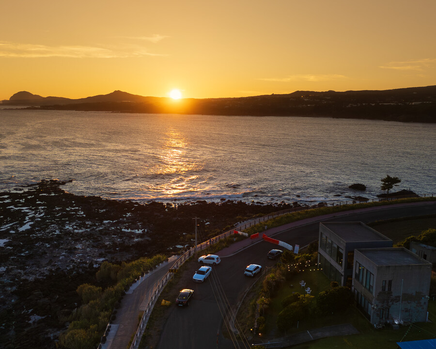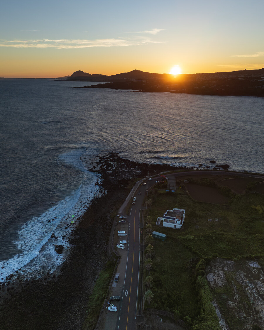 늦은 오후에 와서 멀리 산방산과 군산이 보이는 일몰을 담을 수 있었네요,