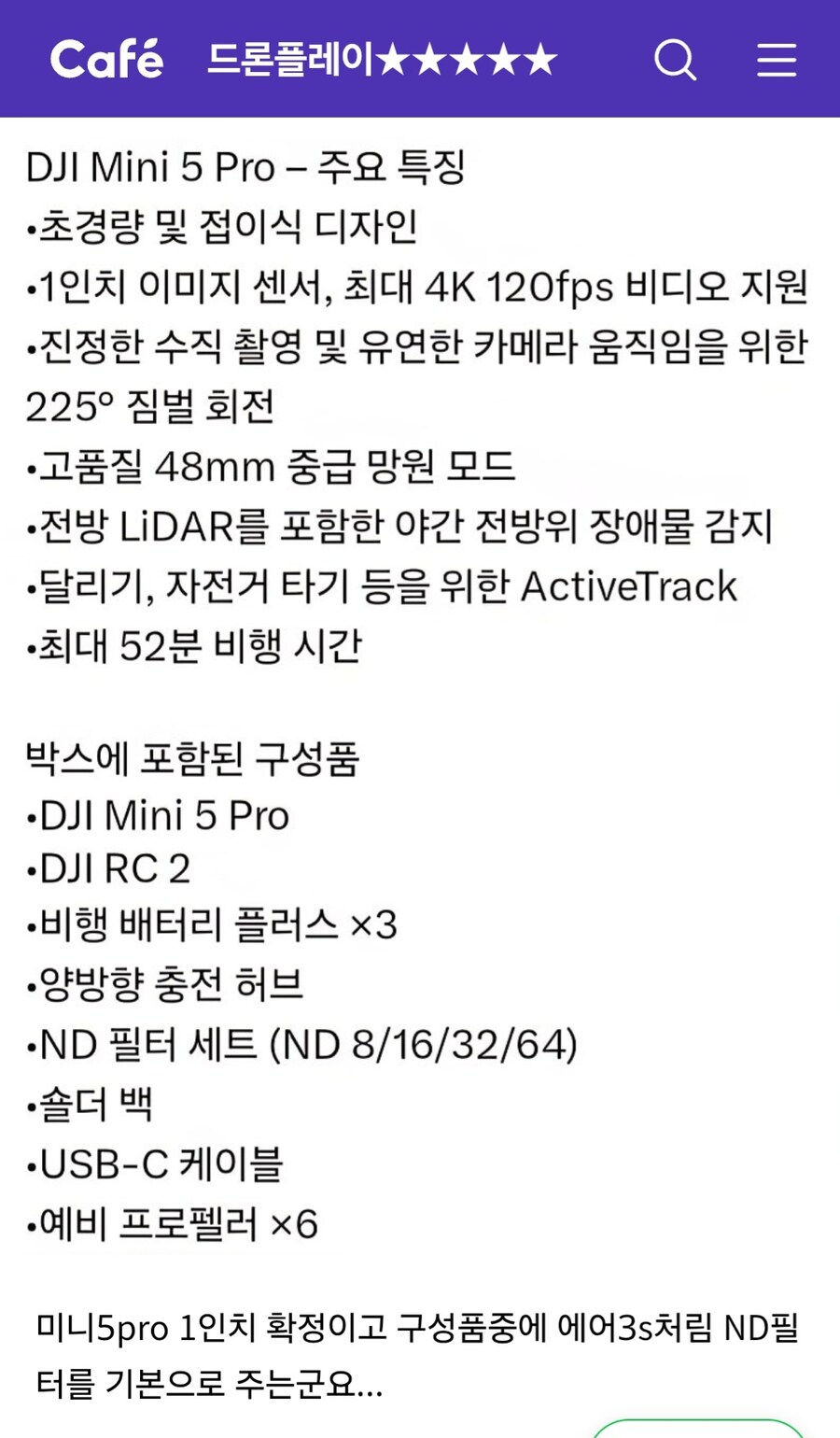 [일상/잡담] 드론) 미니5 1인치 달고나오나보네요.2025.09.02 PM 09:08