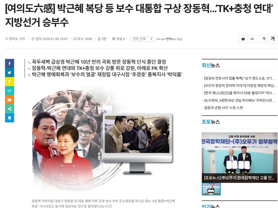 [일상/잡담] 장동혁, 박근혜 복당 검토2026.01.30 PM 07:22