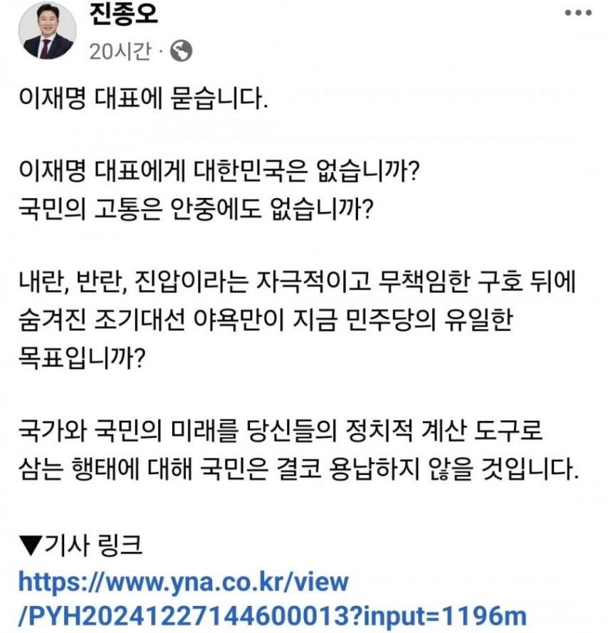[못먹는 정치 Ssul.] [ㅈㅊ] 이재명 대표에 묻습니다//올 해 GOTY 정치 사진 .Ssul.2024.12.29 AM 09:31