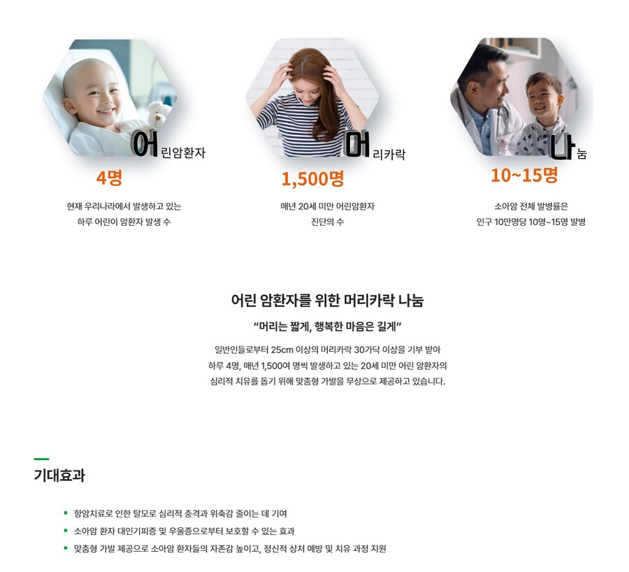 그러다 발견한 소아함 환자를 위한 머리카락 기부제도가 있다는걸 발견했습니다.