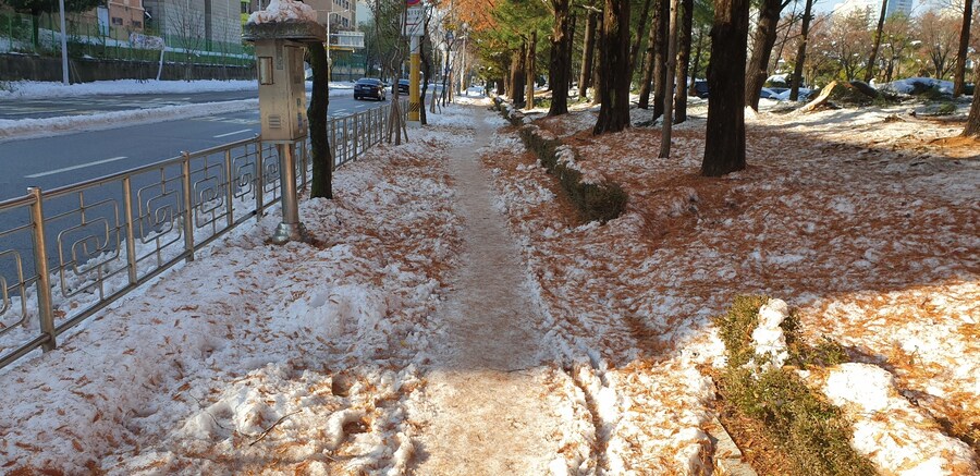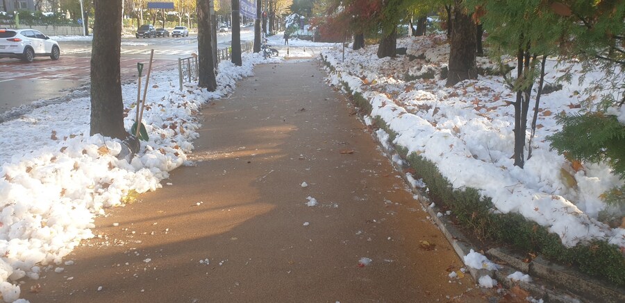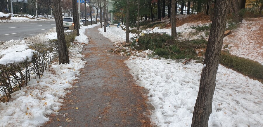 눈이 어제보다 많이 치워져 있어 출근하기엔 어렵지 않았습니다 그런대