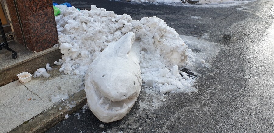 눈을 치워달라는 민원을 넣었다고 하네요 그것 떄문에 그곳으로 향해서 눈을 치웁니다
