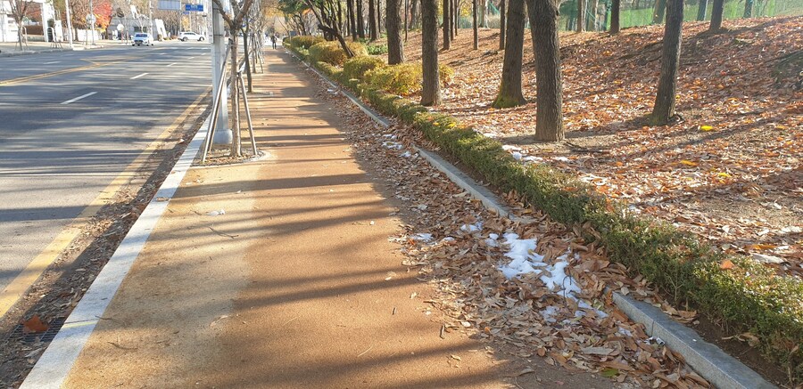 오늘은 우편총집국 쪽 산책로길을 치웠고