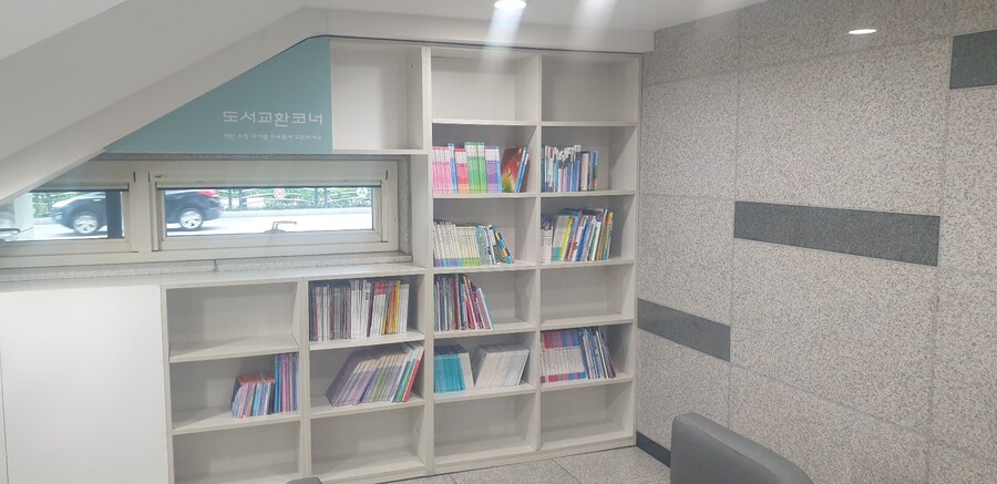 새로 지어진 도서관 답게 휴게 공간들도 있고 원서 나 도서교환 등의 코너 들도 있었습니다.