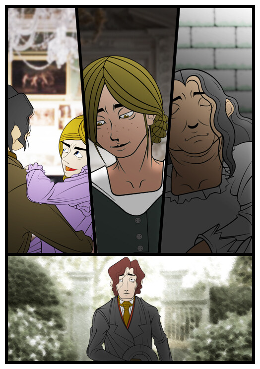 로체스터는 제인의 질투를 자극하기 위해 잉그램 양과 다른 귀족들을 손필드로 초대합니다. 이처럼 로체스터는 자신을 '운명에 의해 버림 받은 남자'로 포장하는 한편 곧 잉그램 양과 결혼할 것처럼 쇼를 합니다. 그리고는 제인에게 자신의 쇼를 지켜보라고 명령한 다음 그녀가 괴로워하는 모습을 보며 즐거워합니다.