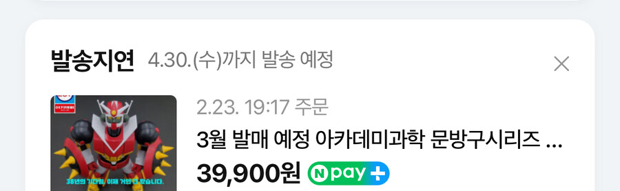 그래도 받으셨네요. 메칸더 물량이 많아서 다른 제품도 밀리나봐요