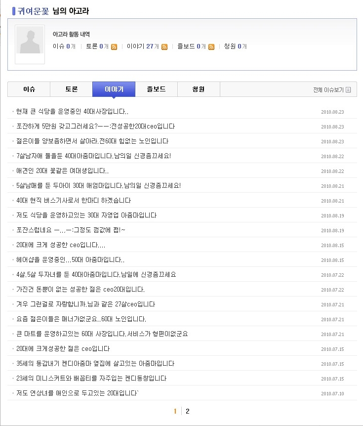 | 게시물 내용 | 닉네임 | 등록일 |